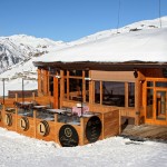 La terraza del refugio es el lugar ideal para disfrutar del sol durante o tras la jornada de esquí junto al Tesoro de Nuestro Patrimonio recién cortado a mano.