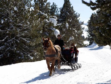 ¡Disfruta del paisaje del valle a caballo, sin necesidad de saber montar! EXCURSIONES (una o varias horas) RUTAS (uno o varios días) PONEYS PARA NIÑOS CURSILLOS (varios niveles) PUPILAJE DE CABALLOS... ¡¡¡ NOVEDAD !!! TRINEOS CON CABALLOS, POR LA NIEVE